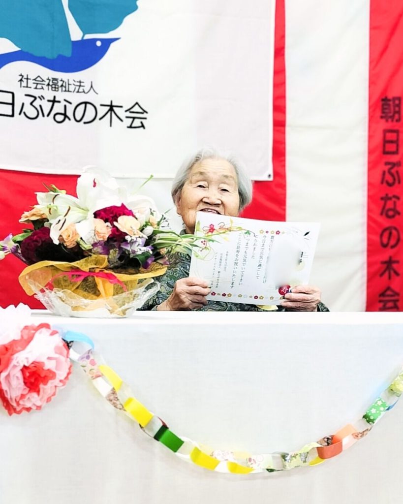 常務理事や職員の祝辞に引き続き、お祝い歳のご利用者様の紹介と賀詞贈呈。