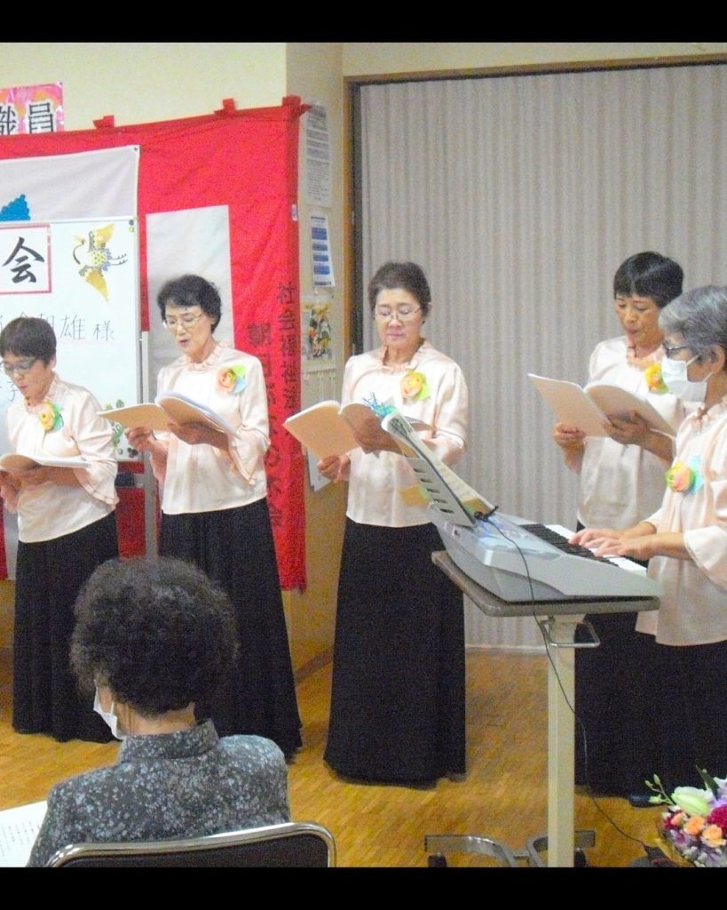 コーラスは普段であいで歌っている歌集より選曲し、皆さんと一緒に手遊びを交え歌声を披露していただきました。