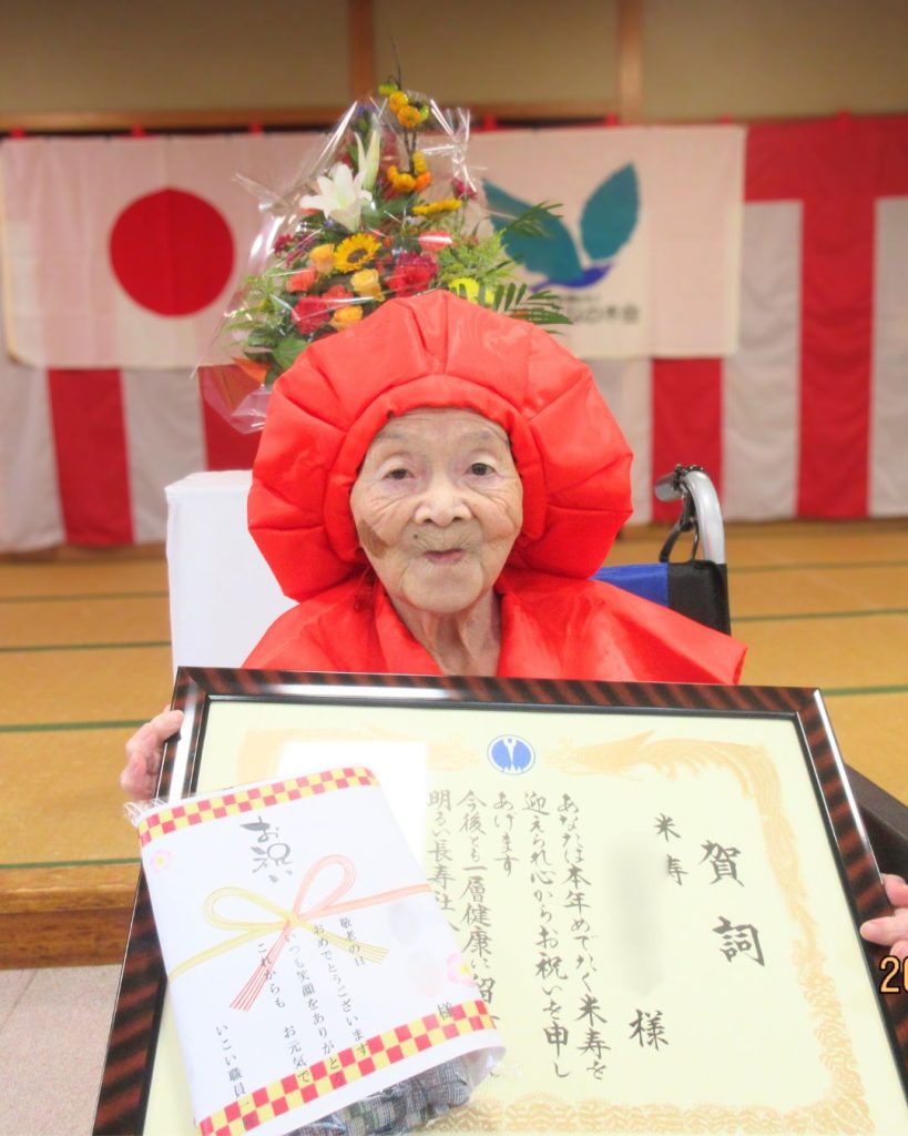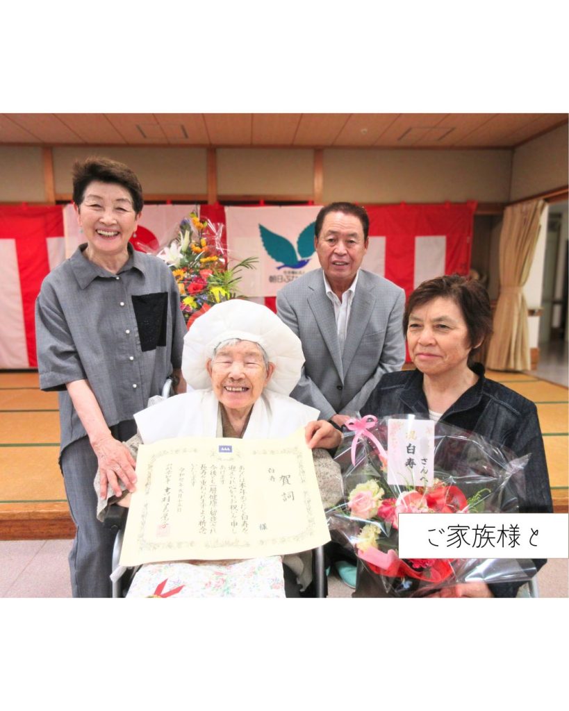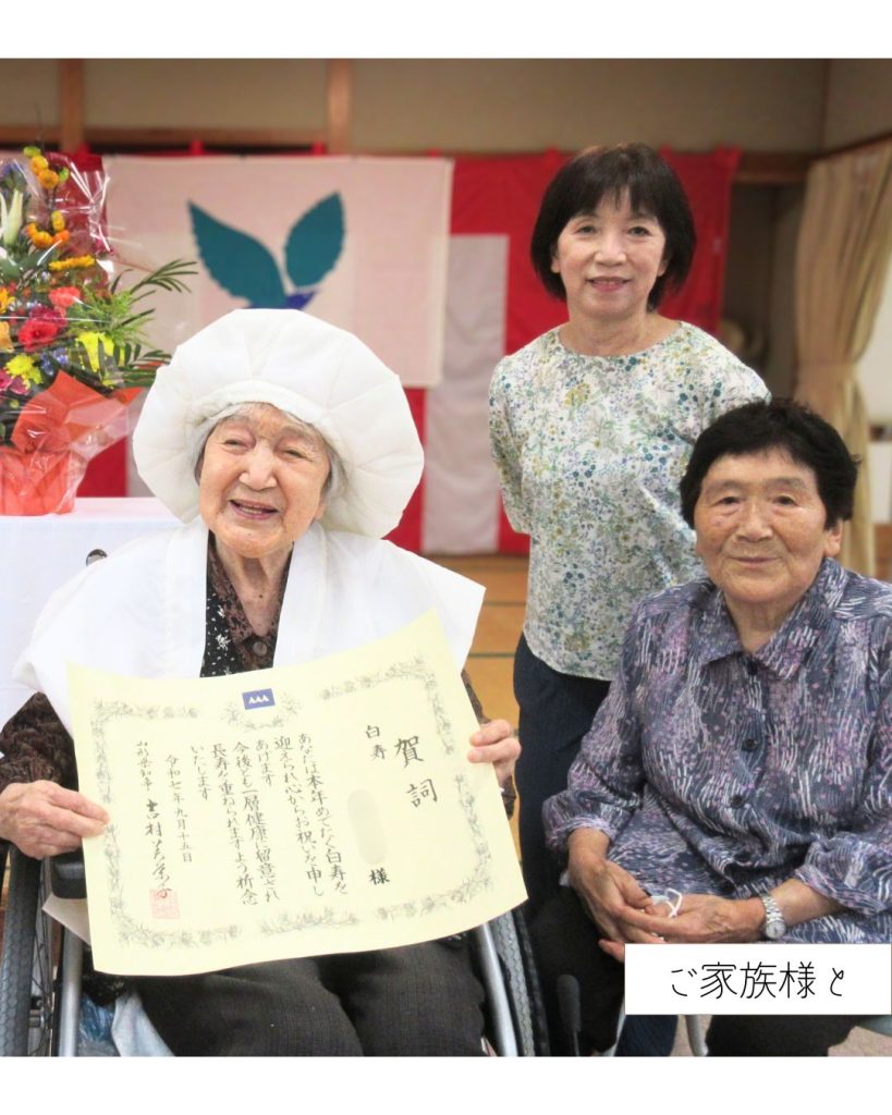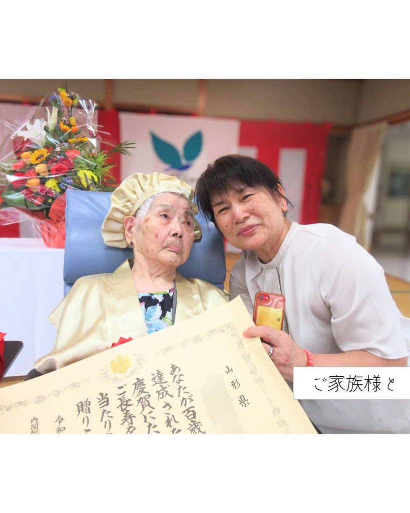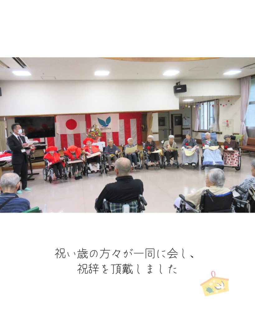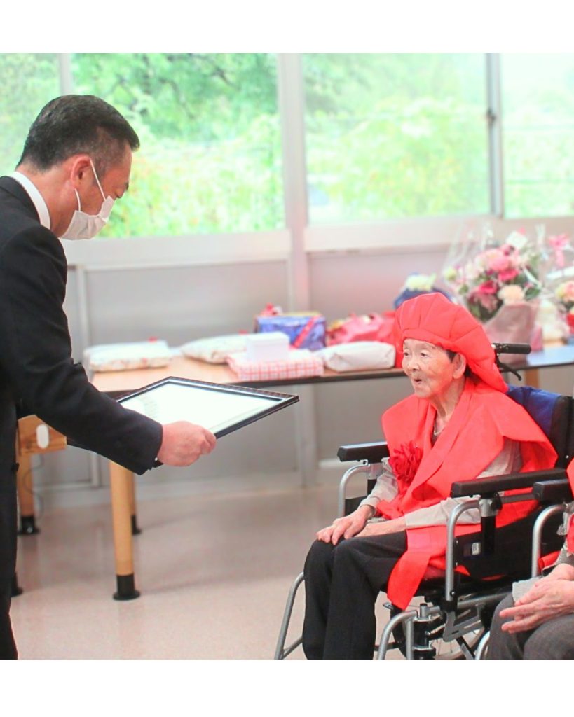 鶴岡市の方が来荘され、賀詞および記念品贈呈を直接入居者様へお渡しいただきました🎖