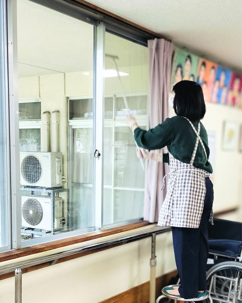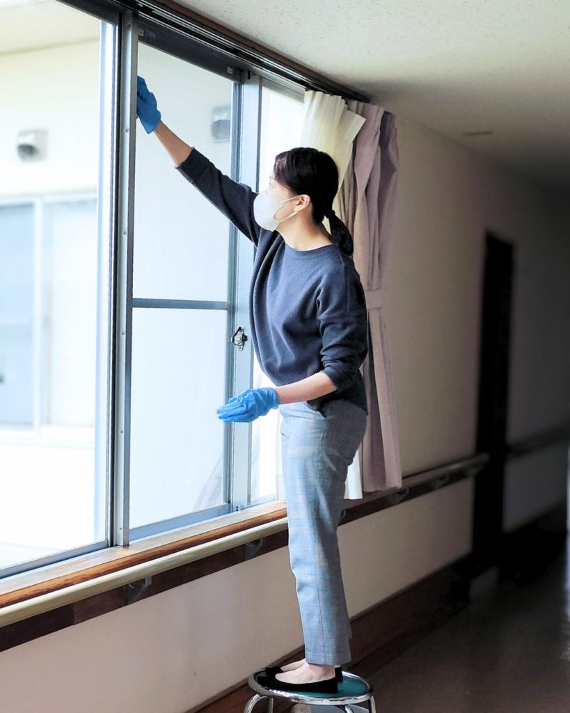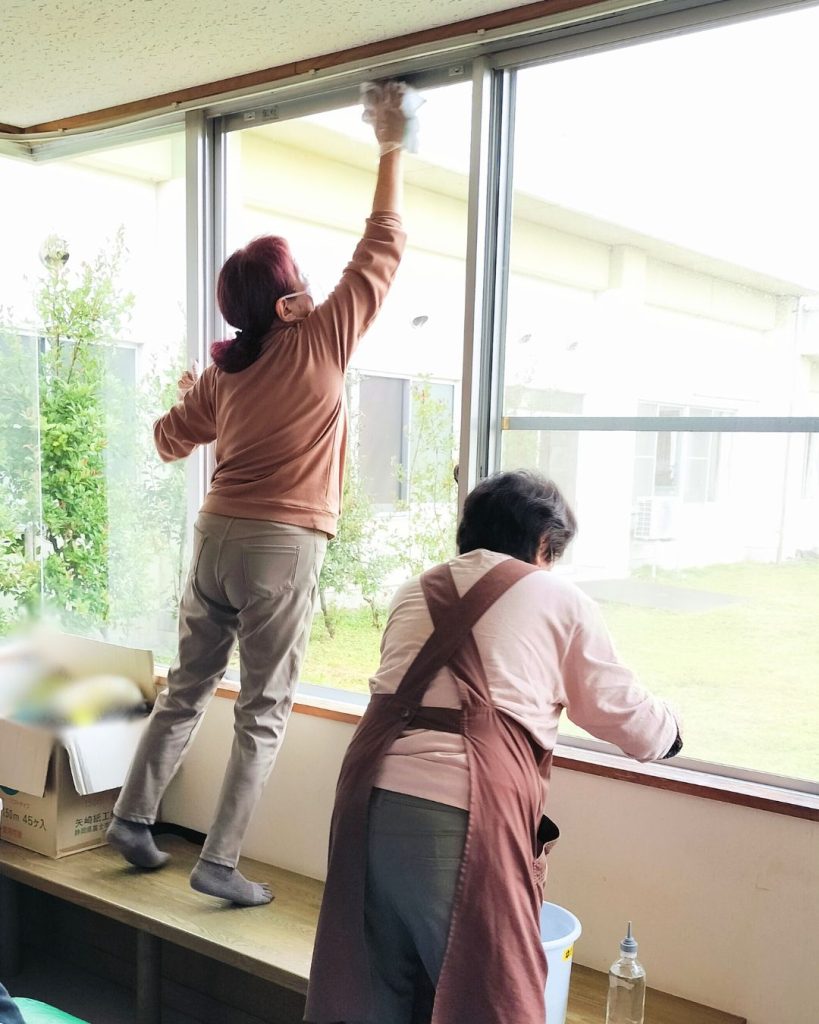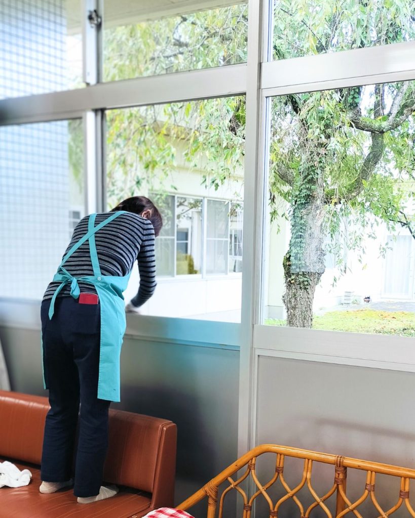 10月16日に#出羽商工会女性部様に来荘いただき、普段では行き届かない窓やサッシなどを中心に窓ふきのボランティア清掃をお願いしました。
