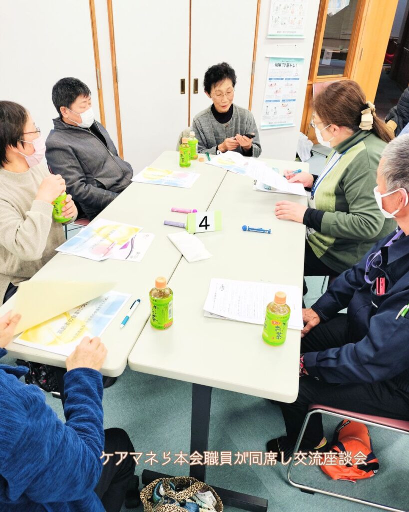 交流座談会では各グループに介護支援専門員などが同席し、様々な不安や疑問を共有しあいました。