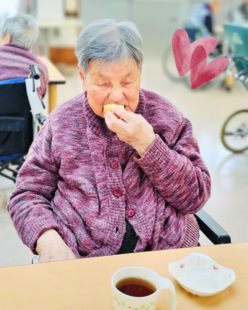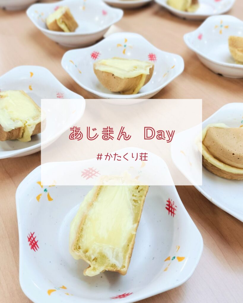 2月のとある日、かたくり荘で「あじまん」のおやつが振る舞われました。